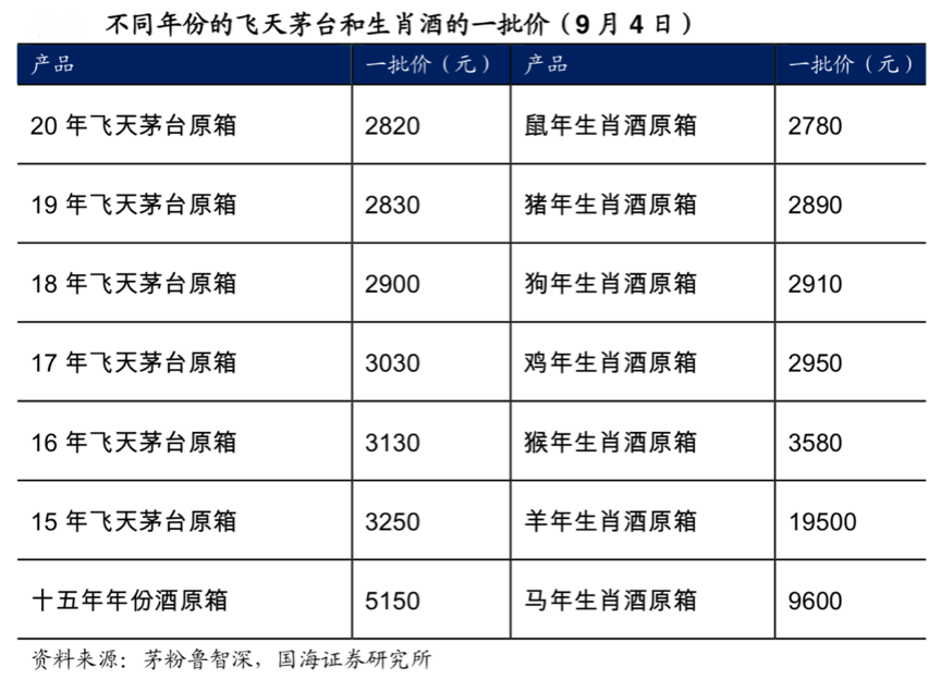 經(jīng)典案例:根據(jù)茅粉魯智深、國(guó)海證券研究所等綜合資訊表明,對(duì)于茅臺(tái)酒來(lái)說(shuō), 隨著年份的增長(zhǎng),茅臺(tái)酒價(jià)格也在相應(yīng)提高,而對(duì)于生肖紀(jì)念酒等非標(biāo)酒,很多只在特定年份生產(chǎn),稀缺性和紀(jì)念意義較強(qiáng),也具有更強(qiáng)的時(shí)間溢價(jià)效應(yīng)。