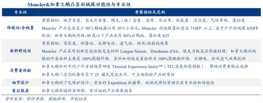 經(jīng)典案例:根據(jù)紡織導(dǎo)報(bào)、搜狐新聞及華創(chuàng)證券等綜合資訊表明,Moncler 于 2003年將產(chǎn)品集中在歐洲生產(chǎn),從含絨量、蓬松度、面料彈性等多方面嚴(yán)把產(chǎn)品質(zhì)量;加拿大鵝在眾多品牌將生產(chǎn)線外移時(shí)仍堅(jiān)持本土生產(chǎn)全程手工制作,并通過研發(fā) TEI 指數(shù)等塑造其“專業(yè)品牌形象”。