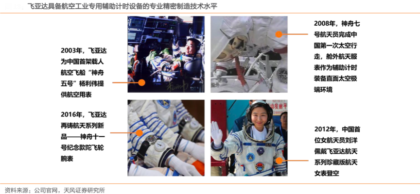 經(jīng)典案例:根據(jù)公司官網(wǎng)、天風(fēng)證券研究所等綜合資訊表明,飛亞達(dá)已經(jīng)具有手表自有機(jī)心和關(guān)鍵零部件制造、航天航空表研制與高端制表技藝等方面的專業(yè)制表能力。 2018 年起公司獨(dú)立劃分出精密科技業(yè)務(wù)板塊,目前擁有 2 家國(guó)家高新技術(shù)企業(yè),獲得專利 授權(quán) 446 項(xiàng);主導(dǎo)編制國(guó)家鐘表行業(yè)標(biāo)準(zhǔn)數(shù)占比高達(dá) 55%,主導(dǎo)及參與了多項(xiàng)國(guó)際標(biāo)準(zhǔn)的編制。“優(yōu)質(zhì)的技術(shù)識(shí)別”成為其打造產(chǎn)業(yè)品牌的“有利武器”。