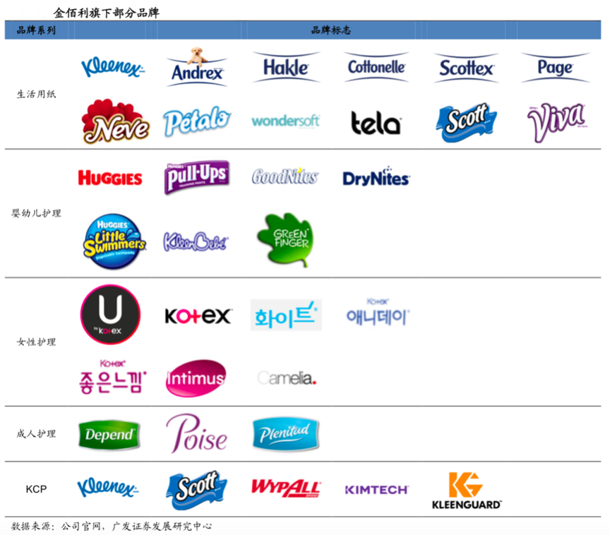 經典案例:根據公司官網、廣發證券發展研究中心等綜合資訊表明,金佰利擁有多個品牌, 2019年個護類業務收入占比達到49.5%;生活用紙和KCP專業產品分別占比32.6%和17.9%,其品牌核心價值更涵蓋了關愛、呵護、科技等多個品牌價值點,組成強大的品牌家族以推進品牌核心價值的高效組合。