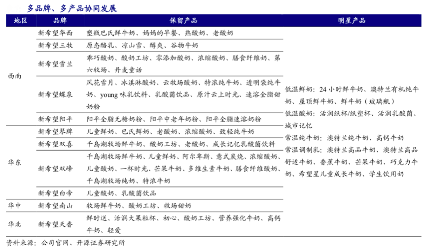 經(jīng)典案例:根據(jù)公司官網(wǎng)、開(kāi)源證券研究所等綜合資訊表明,新乳業(yè)收購(gòu)地方性乳企后會(huì)保留被收購(gòu)方的品牌及優(yōu)質(zhì)產(chǎn)品,將眾多公司產(chǎn)品根據(jù)產(chǎn)品定位、質(zhì)量等方面進(jìn)行整合,使得各個(gè)地方性乳企的產(chǎn)品有共同的質(zhì)量標(biāo)準(zhǔn),且各產(chǎn)品間能產(chǎn)生關(guān)聯(lián);同時(shí)積極導(dǎo)入新乳業(yè)整體產(chǎn)品營(yíng)銷(xiāo)策略和明星產(chǎn)品,如城市記憶系列酸奶、24 小時(shí)鮮牛奶及活潤(rùn)酸奶等產(chǎn)品,協(xié)同本土品牌已有資源和當(dāng)?shù)叵M(fèi)者消費(fèi)習(xí)慣差異化地推動(dòng)產(chǎn)品落地。