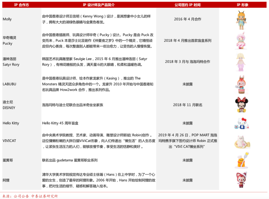 經典案例:根據公司公告、中泰證券研究所等綜合資訊表明,泡泡瑪特擁有自有 IP和獨家IP兩類,對于自有IP,公司享有完全知識產權,包括開發以及銷售潮流 玩具以及授權獲得額外變現機會的權利。2017-2019 年公司自有IP 產品 的收益分別為 0.4/2.16/6.27 億元。而對于獨家 IP,公司與設計師簽訂授權協議,藝術家一般為公司提供中國及其他區域開發及銷售基于 IP 產品的潮流玩具的獨家權利。