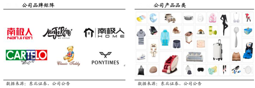 經典案例:根據東北證券、公司公告等綜合資訊表明,南極人公司通過阿里、京東、社交電商、唯品會 等各電商渠道銷售,2019 年公司品牌在各電商渠道上合計約有 10 萬個產品鏈接,授權品牌產品的可統計 GMV 為305.59 億元,同比增長 48.92%,產品品類多樣。