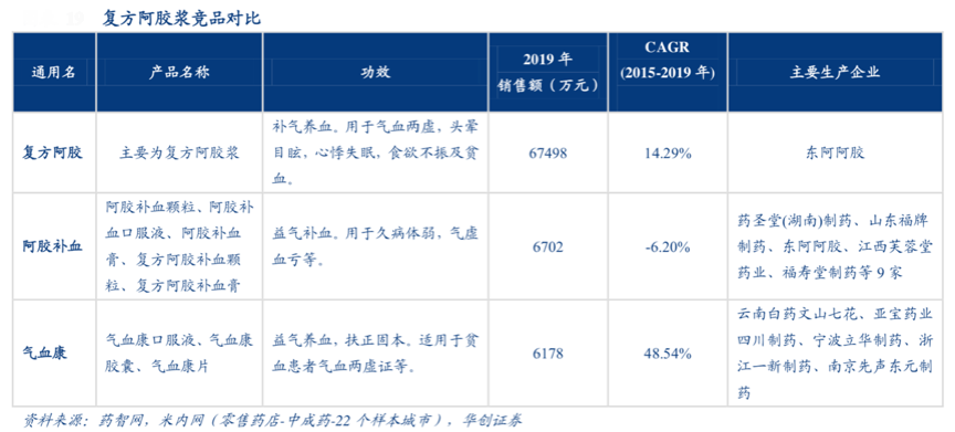 經典案例:根據藥智網、米內網和華創證券等綜合資訊表明,復方阿膠漿主打氣血雙補,適應癥內競爭對手較少,銷售額穩居前列,用戶的品牌偏好度比較顯著。