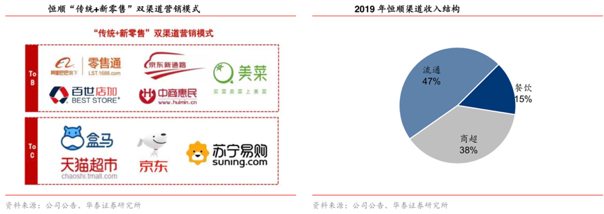 經典案例:根據公司公告、華泰證券研究所等綜合資訊表明,恒順正探索“傳統(tǒng)+新零售”雙渠道營銷模式。從 2B 端來看,恒順與以阿里巴巴零售通、京東新通路、 百世店加、中商惠民惠配通、美菜網為代表的多家電商平臺達成深度合作,積極探索新零售策劃運營等新商業(yè)策劃實踐。