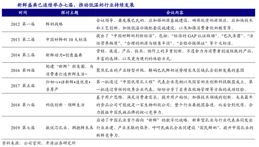 經典案例:根據公司官網、開源證券研究所等綜合資訊表明,新希望乳業推進“新鮮盛典”行業鮮奶論壇,將以“鮮奶”為主營業務的乳企聚集在一起,共同探討行業發展前景,推動巴氏鮮奶成為引領中國乳制品的消費潮流,截至 2019年已持續舉辦七屆。
