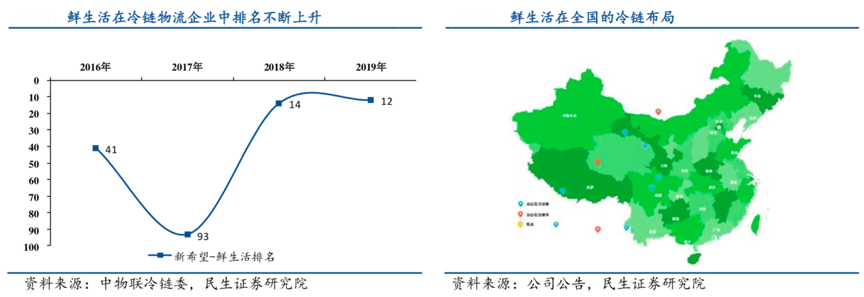 經典案例:根據中物聯冷鏈委、公司公告、民生證券研究院等綜合資訊表明,新希望集團旗下擁有專業的冷鏈物流 “鮮生活”,為新乳業賦能冷鏈。截至 2019 年,“鮮生活”在國內冷鏈物流企業綜合實力排名第 12,具備全國城市全網服務能力,并且公司業務區域與“鮮生活”基本重疊,具備較強的協同效應。