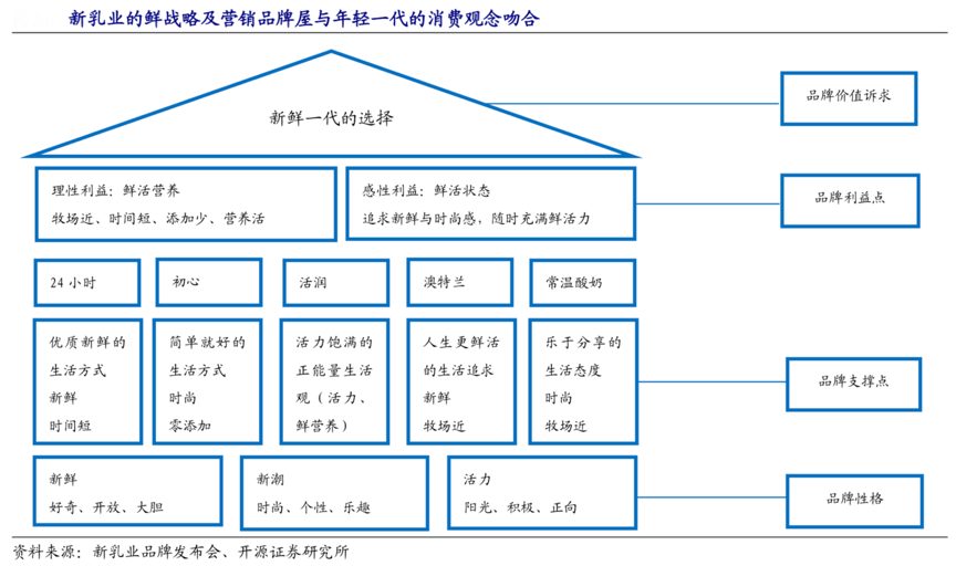 經典案例:根據新乳業品牌發布會、開源證券研究院等綜合資訊表明,新乳業持續以“鮮戰略”推進乳業產業級品牌營銷,刷新年輕一代的消費認知,提升低溫奶及關聯產品的消費認知認同,創造了新鮮、新潮和活力的“品牌性格”。