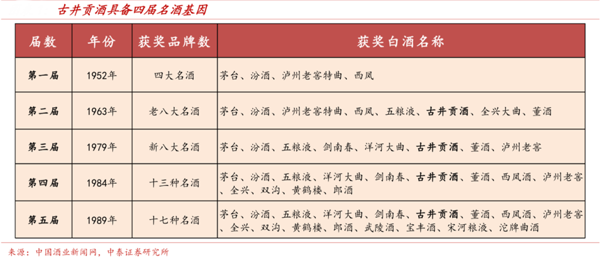 經典案例:根據中國酒業新聞網、中泰證券研究所等綜合資訊表明,古井貢酒是安徽省亳州地區特產的大曲濃香型白酒,歷史上古井貢酒四次蟬聯全國白酒評比金獎,品牌基因在安徽是最強的,在全國僅次于茅臺、五糧液、老窖和汾酒等。
