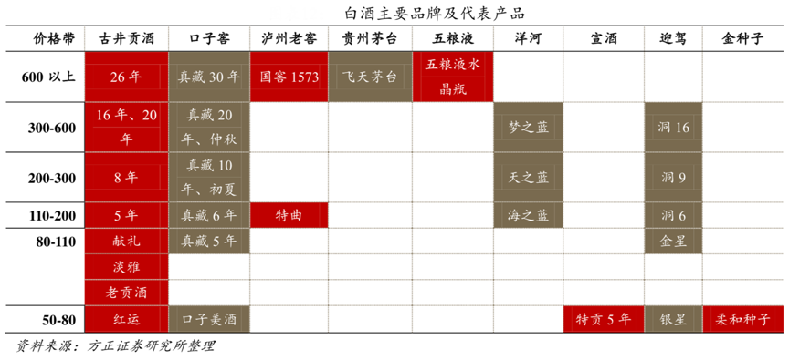 經典案例:根據方正證券研究所等綜合資訊表明,目前安徽省白酒市場中,口子窖和古井貢酒憑借其品牌和渠道優勢,牢牢占據著 80 元以上的價格帶,預計在80-500元價格帶占有70%左右的市場份額。從省內各品牌收入利潤規模和成長情況來看,古井貢酒和口子窖已處于絕對強勢地位,成長的戰略空間已經打開。