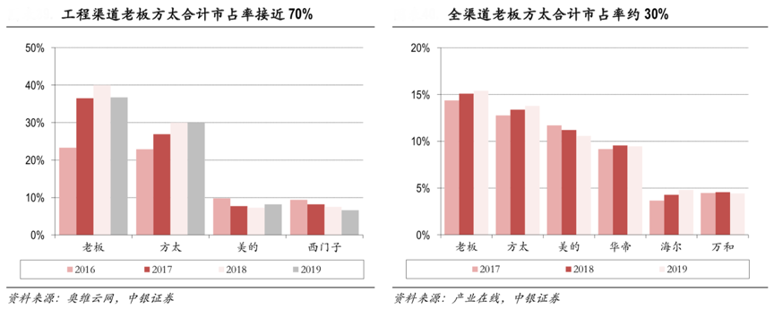 經(jīng)典案例:根據(jù)奧維云網(wǎng)、中銀證券、產(chǎn)業(yè)在線等綜合資訊表明,家電渠道由 C 端主導(dǎo)正向“B端化”推進(jìn),以工程渠道為例,精裝修市場中品牌集中度相對較高,老板、方太市占率合計(jì)約70%,高于兩者全渠道合計(jì)市占率30%,全渠道及工程渠道的客戶價(jià)值日益明顯。
