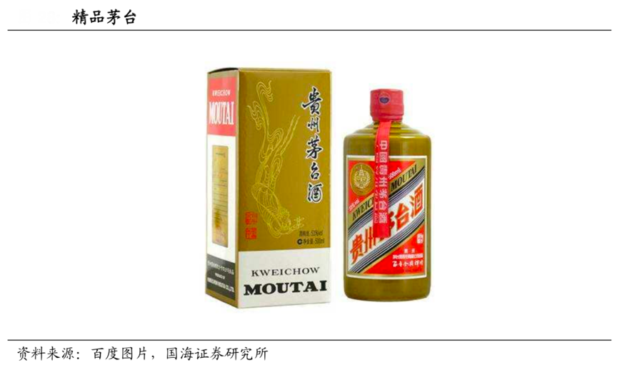 經典案例:根據百度圖片、國海證券研究所等綜合資訊表明,在“醬瓶”國宴茅臺停產后,茅臺酒廠相繼又推出了“匠心茅臺”“精品茅臺”。精品茅臺酒是陳釀酒質標準的茅臺酒,即用不低于 10 年的基酒勾兌、具有陳年茅臺酒品質的茅臺酒,比普通飛天茅臺酒更加醇厚香濃,口感更豐富飽滿,棉和柔軟。