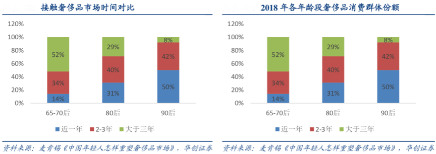 奢侈品品牌消費的人群基礎正在發生變化,中產精英人群引領著國內奢侈品消費,90后成為奢侈品消費“新一代”,針對90后的奢侈品新零售電商策劃運營正當時。 根據麥肯錫《中國年輕人怎樣重塑奢侈品市場》、華創證券等綜合資訊表明,90 后群體主要為首次購買奢侈品的消費者,截至 2019 年 4 月,92%的 人群在近三年內才開始接觸奢侈品;而我國的 65 后和 70 后多為奢侈品忠實客戶,近一半以上人群多年接觸奢侈品 品牌。即便千禧一代近幾年才開始接觸奢侈品,但其貢獻了大部分的中國奢侈品消費。