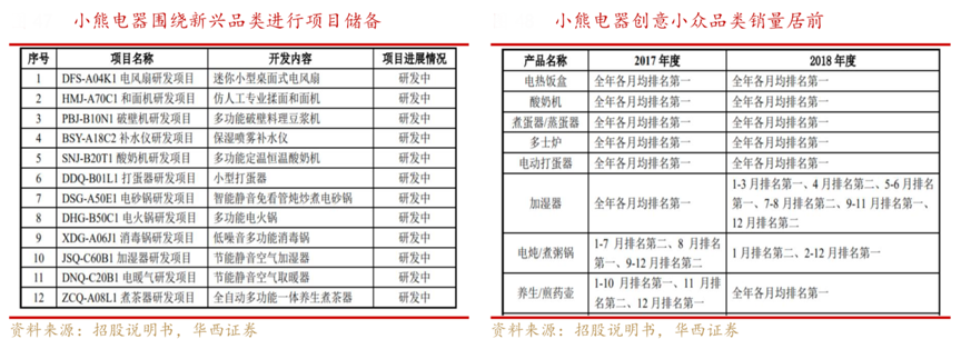 經典案例:根據招股說明書、華西證券等綜合資訊表明,新寶旗下摩飛品牌業務覆蓋榨汁杯、多士爐、料理棒、咖啡機等西式小廚電,小熊推出酸奶機、煎藥壺、養生壺、電熱飯盒等個性化的多樣創意小家電,這些品類消費市場小眾但品類繁多,在功能覆蓋和外形設計上出新, 產品 SKU 達到 400 個以上,高度細化覆蓋從嬰幼、青年到中老年全年齡段全場景,廣泛布局長尾市場。
