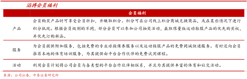 經典案例:根據公司公告、中泰證券研究所等綜合資訊表明,為進一步豐富會員活動,提升和集合服務體驗,滔搏公司于 2 月 14 日上線了滔搏運動 APP,截止 4 月底用戶突破 50w,MAU 超過 36w 人,其將在此基礎上完整呈現會員福利和活動。