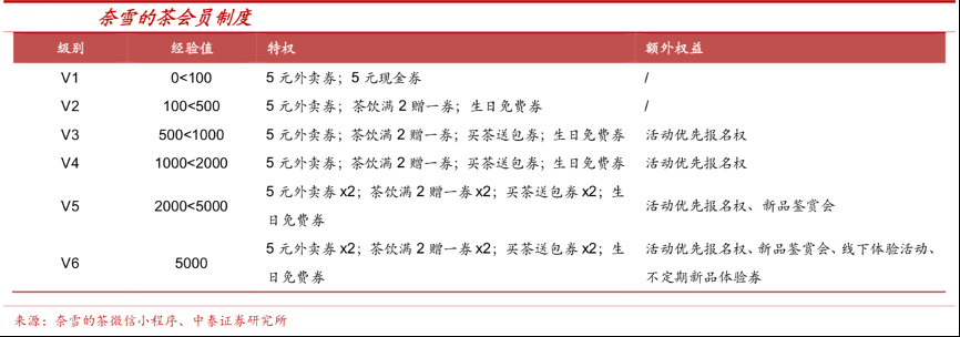 經典案例:根據奈雪的茶微信小程序、中泰證券研究所等綜合資訊表明,“奈雪的茶”會員制度比較靈活,其將外賣券與現金券、生日免費券等進行綁定,效果顯著。2020Q4,奈雪的活躍會員達到 580 萬人,復購會員占比達到 29.8%,2020 年前 9 個月其會員訂單貢獻比 49.4%。