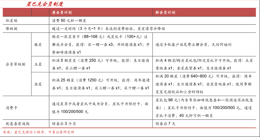 經典案例:根據星巴克資料、微信小程序及中泰證券研究所等綜合資訊表明, 2018年星巴克取消了購買星享卡或星禮包注冊會員的制度,用戶通過手機端注冊即可免費成為會員,會員門檻大大降低,同時縮短了降級制的期限時間和優惠券的有效期促進了消費頻次提高,進一步增強會員的黏性。2021Q1,星巴克 90 天活躍會員總數2180 萬人,收入貢獻比高達50%,會員的高粘性是其收入增長的重要基礎。