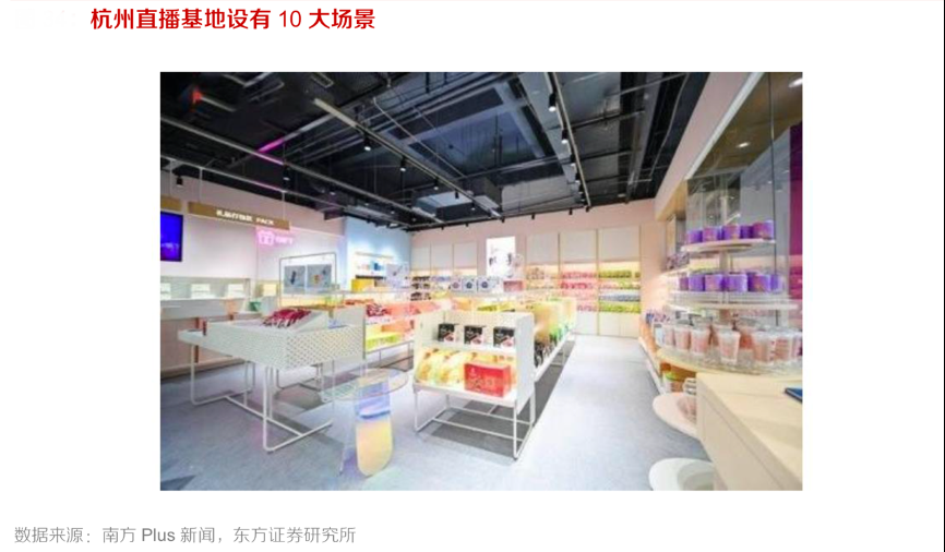 經典案例:根據南方Plus新聞、東方證券研究所等綜合資訊表明,良品鋪子積極把握行業新風口,專門搭建社交電商團隊進行運營。目前,良品的社交電商生態主要包括以下 2 種模式:1)自建直播間進行日常直播;2)與達人合作,進行直播帶貨。20 年公司與包括 李佳琦、毛毛姐在內的超 150 位頭部明星達人主播深度合作,全年完成了3700 余場直播。其現已建立 1200 m²超大型直播基地,共設 10 大定制化直播間,全天最多可上線 20 場次直播。
