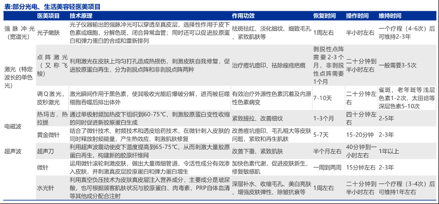 經典案例:根據新氧、申萬宏源研究等綜合資訊表明,輕醫美項目主要包括局部注射類、激光光電美容類及微創吸脂類等,具有創傷小、恢復快、風險低、操作簡單等特點,一方面,輕醫美低價便捷的特征使之逐漸成為常態化的美容保養手段,提升用戶規模;另一方面因為輕醫美項目持續時間有限,需要定期保養,所以具有較高復購率。