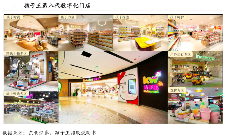 經典案例:根據東北證券、孩子王招股說明書等綜合資訊表明,孩子王持續推進門店功能和定位的迭代升級,打造以場景化、服務化、 數字化為基礎的大型用戶門店。其已從第一代普通線下門店升級為第八代數字化門店。在商品陳列方面,孩子王門店以情景解決方案為基礎,打造了孩子時尚區、孩子探索區、孩子呵護區、孩子力量區以及綜合專區。