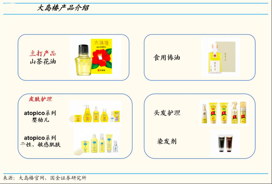 經(jīng)典案例:根據(jù)大島椿官網(wǎng)、國金證券研究所等綜合資訊表明,大島椿品牌 1927年起源于日本伊豆大島,其始終堅持選用無農(nóng)藥栽培的山茶花籽為原料,結(jié)合獨有提煉技術(shù),提供安全、溫和、天然的頭發(fā)護理、皮膚護理、食用山茶花油等產(chǎn)品。