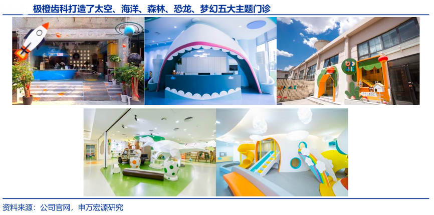 經典案例:根據公司官網、申萬宏源研究等綜合資訊表明,極橙以“幫孩子快樂看牙”為使命,首創沉浸式游戲化看牙體驗,并將每家診所都打造成孩子 的“主題游樂場”,為孩子開發身臨其境的體驗?,F已有太空、海洋、森林、海陸空三大主題。