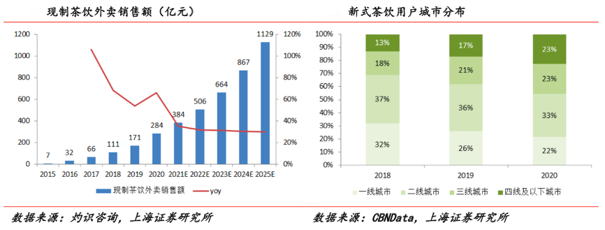 經(jīng)典案例:根據(jù)灼識(shí)咨詢、CBNData、上海證券研究所等綜合資訊表明,從市場下沉來看,2020年新式茶飲在一線、二線、三線、四線及以下城市市場增速分別為40.53%、52.24%、81.9%、124.7%,三線以下城市新式茶飲市場有很大的增長空間。目前現(xiàn)制茶飲門店多位于一二城市,而三四線城鎮(zhèn)青年群體消費(fèi)意愿強(qiáng)烈,其將呈現(xiàn)向三四線城市下沉趨勢。