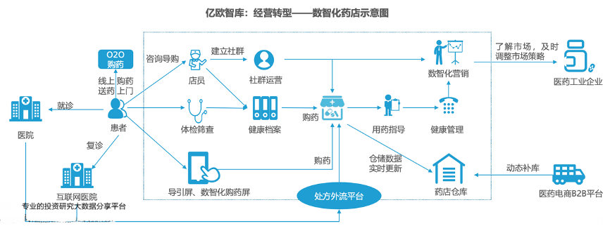 經典案例:根據億歐智庫《億歐智庫-醫藥行業:2021年中國藥店創新趨勢報告》等綜合資訊表明,數智化藥店,即利用互聯網、物聯網、人工智能等創新技術,利用各類資源,構建藥店數智化供應鏈體系,提升藥店數智化營銷與藥事服務能力,推動藥店數智化運營和管理,同時有效的連接醫藥工業與醫藥零售端,促進醫藥工業端深刻理解終端患者。