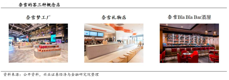 經典案例:根據公開資料、興業證券經濟與金融研究院等綜合資訊表明,奈雪的茶對標星巴克,打造具有包容性和體驗感的社交空間文化,向消費者提供有別于家和公司外的第三個聚集空間。結合灼識咨詢數據,截止 2020 年底,按年商品交易總額計中國排名前 50 的購物中心中有 28 家開設奈雪的茶茶飲店。在門店類型上,店型包括標準店(包括奈雪夢工廠、奈雪的禮物店、奈雪Bla Bla Bar等多元化理念店)和 PRO 店,主力店型每家連鎖店只保留“40%的相似性”,融入藝術、文化及生活元素精心設計門店空間,集餐飲、零售、娛樂及文創周邊于一身,強調服務和休閑屬性。