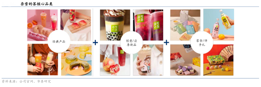 經(jīng)典案例:根據(jù)公司官網(wǎng)、華泰研究等綜合資訊表明,奈雪的茶核心菜單包括 25+種經(jīng)典茶飲、25+種烘焙產(chǎn)品,其中三大經(jīng)典鮮果茶霸氣芝士草莓、霸氣橙子、霸氣芝士葡萄廣受消費者歡迎,2020共售出近 2180 萬杯,占奈雪的茶現(xiàn)制茶飲零售總額的 27.6%。