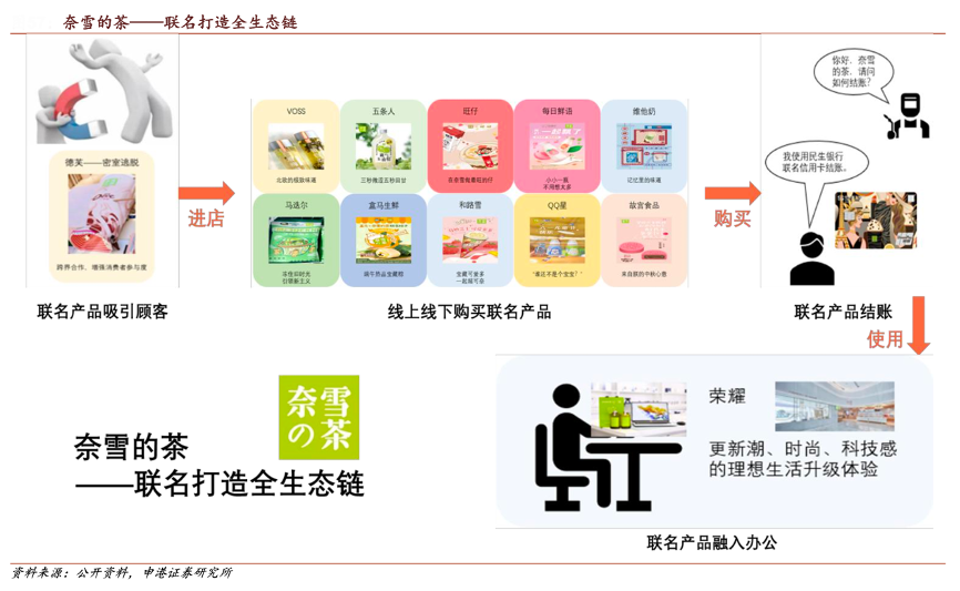 經典案例:根據公開資料、申港證券研究所等綜合資訊表明,奈雪產品與李寧、五條人等展開多種“聯合合作”,品牌影響力持續擴大。