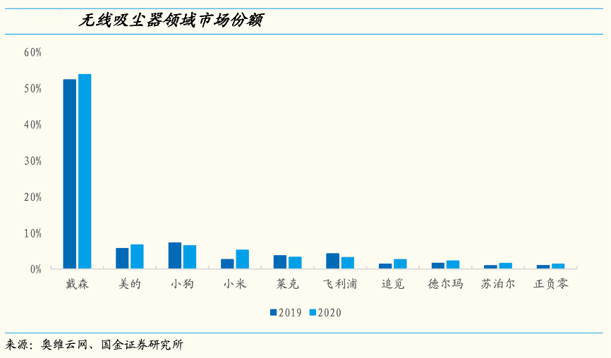 經典案例:根據奧維云網、國金證券研究所等綜合資訊表明,戴森憑借顛覆性的技術突破打開中國市場,2015年戴森革命性升級的核心技術—V6 數碼馬達電機推動了世界無線吸塵器的一場革命。從技術上看,無線手持吸塵器的核心就是電機,更輕更有效的電機就是行業的技術壁壘所在。對應到性能上,吸力和續航是無線吸塵器最重要的兩項指標。