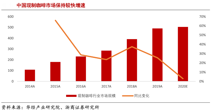 經(jīng)典案例:根據(jù)華經(jīng)產(chǎn)業(yè)研究院、浙商證券研究所等綜合資訊表明,中國(guó)大陸咖啡市場(chǎng),特別是現(xiàn)制咖啡市場(chǎng)發(fā)展時(shí)間較短,仍處于市場(chǎng)規(guī)??焖僭鲩L(zhǎng)和消費(fèi)習(xí)慣養(yǎng)成階段。根據(jù)華經(jīng)產(chǎn)業(yè)研究院數(shù)據(jù),中國(guó)大陸現(xiàn)制咖啡市場(chǎng)規(guī)模近年來(lái)保持 20%以上年增速,2019 年達(dá)到 489 億元。2020年受疫情影響,增速放緩,約為 503 億元。