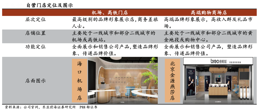 經典案例:根據公司官網、東亞前海證券研究、P88轉讓書等綜合資訊表明,截至 2020 年末,倍輕松公司在全國各大城市共有 165 家直營門店,主要分布在一二線城市的高鐵、機場和中高端購物商場,渠道布局與公司線下目標客群商務人士的消費場景十分契合。通過高勢能門店的布局,其將自身品牌、產品精準觸達到中高端優質客戶群體,提供更好的產品購買體驗以加強品牌認知及信任感。