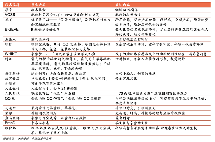經典案例:根據公開資料、申港證券研究所等綜合資訊表明,奈雪和李寧、德芙等跨界合作,共同開發聯名產品,創造品牌新價值。