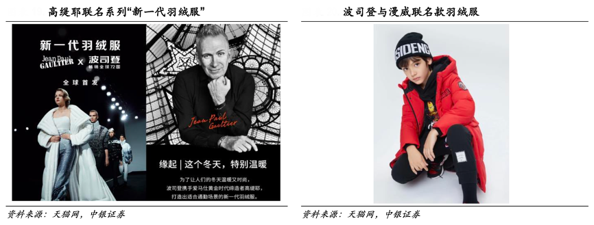 經(jīng)典案例:根據(jù)天貓網(wǎng)、中銀證券等綜合資訊表明,為了應(yīng)對品牌老化、款式陳舊的問題,為品牌注入年輕時尚的形象,波司登公司整合全球優(yōu)勢資源,引入新想法、新理念,與國際頂尖設(shè)計師、知名 IP 合作, 對產(chǎn)品進行了全面升級。其攜手愛馬仕黃金時代締造者高緹耶、時尚設(shè)計大師高田賢三、世界知 名時裝設(shè)計師埃尼奧 • 卡帕薩等推出聯(lián)名系列,款式設(shè)計檔次拉升,受到明星大咖、時尚博主的喜愛,引發(fā)搶購熱潮。同時其與華特迪士尼、漫威合作推出聯(lián)名款,產(chǎn)品風格更具年輕時尚感,博取年輕消費群體的眼球。