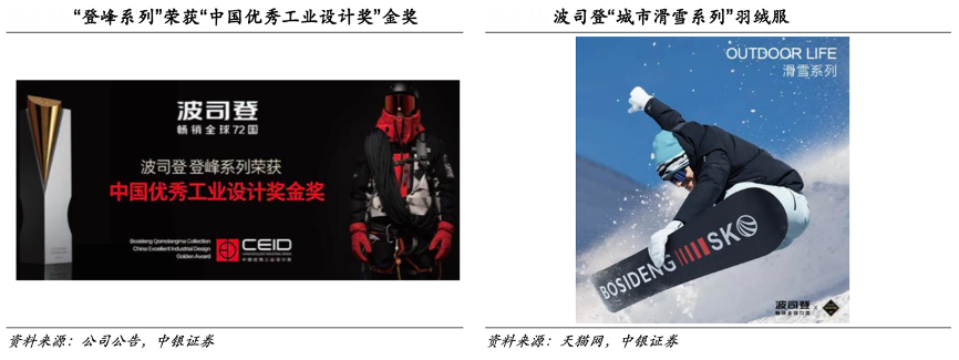 經(jīng)典案例:根據(jù)公司公告、天貓網(wǎng)、中銀證券等綜合資訊表明,波司登公司致力于產(chǎn)品“時尚+功能”的設(shè)計理念,以原創(chuàng)設(shè)計傳遞“大品牌、好品質(zhì)、羽絨服代名詞” 的品牌基因,不斷刷新羽絨服行業(yè)的設(shè)計美學與功能開發(fā),“登峰系列”榮獲“中國優(yōu)秀工業(yè)設(shè)計獎”金獎,“城市滑雪系列”榮獲 ISPO Award 全球設(shè)計大獎。其產(chǎn)品注重專業(yè)品質(zhì),每件羽絨服至少經(jīng)過 62 位工藝師、150 道以上的制作工序。