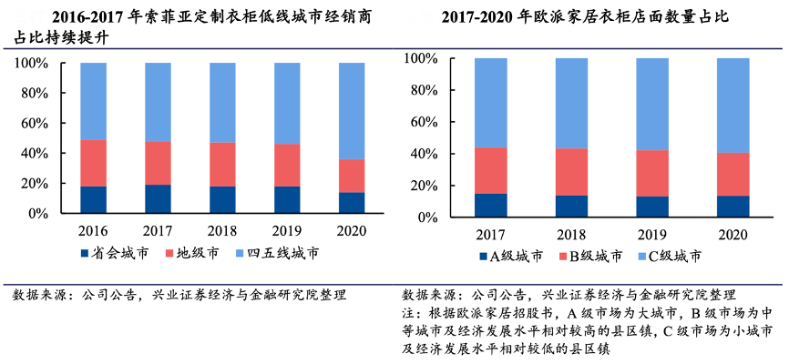 經典案例:根據公司公告、興業證券經濟與金融研究院等綜合資訊表明,隨著一二線城市門店布局趨于飽和、競爭呈現白熱化態勢,品牌生產商通過開發中低端品牌向低線城市滲透,打造新的增長動力。居然之家公司以品牌和管理輸出加快在下沉市場的門店布局,憑借賣場客流集聚優勢吸引品牌生產商。