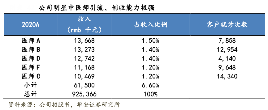 經典案例:根據wind、公司官網、華安證券研究所等綜合資訊表明,固安堂明星醫師具備引流效應,top醫生創收能力持續增強。結合招股說明書數據,其擁有引流效應的明星中醫師能夠為其持續帶來收入。