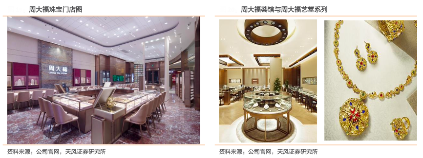 經(jīng)典案例:根據(jù)公司官網(wǎng)、天風(fēng)證券研究所等綜合資訊表明,周大福薈館、周大福藝堂由周大福珠寶門店升級而來,為高端客戶提供奢華珠寶體驗(yàn)。周大福薈館是周大福多元化的珠寶零售體驗(yàn),以“永致精品”為市場定位,薈萃國際珠寶品牌,以迎合越 來越有品位的顧客需求。周大福藝堂是周大福珠寶集團(tuán)最頂級的高端藝術(shù)珠寶店,將周大 福的工與藝提升至鑒賞級別,給具備賞藝情操的消費(fèi)群一個(gè)藏珍的良機(jī),其中的珠寶首飾 涵蓋故宮系列、藝術(shù)家系列和藝堂系列。HEARTS ON FIRE(2014)是周大福旗下最高端的鉆石品牌,以追求至完美切工而享譽(yù)盛名。