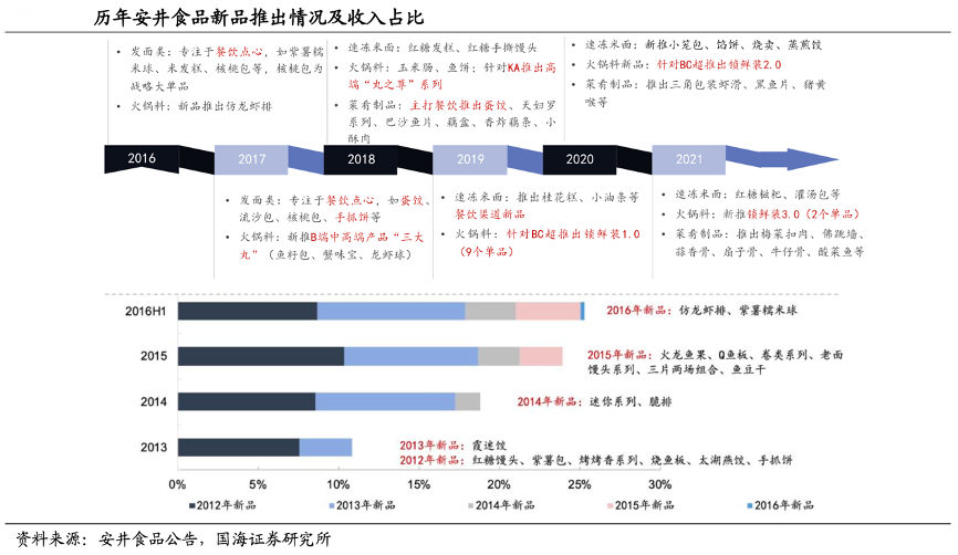 經典案例:根據安井食品公告、國海證券研究所等綜合資訊表明,安井食品公司多年來培育了多個億元級新品、次新品,對于打造大單品有非常豐富的經驗。首先在預制菜選品上,其擁有明晰的策略:家喻戶曉大單品、BC兼顧、烹飪加工難度大、自制原材料成本更高、菜品還原度高。選品能力很大程度決定了產品未來的成功概率, “菜肴三俠”(酸菜魚、扇子骨、牛仔骨)、梅菜扣肉等菜品,得到了較高的市場反饋,已逐步集中資源推廣。