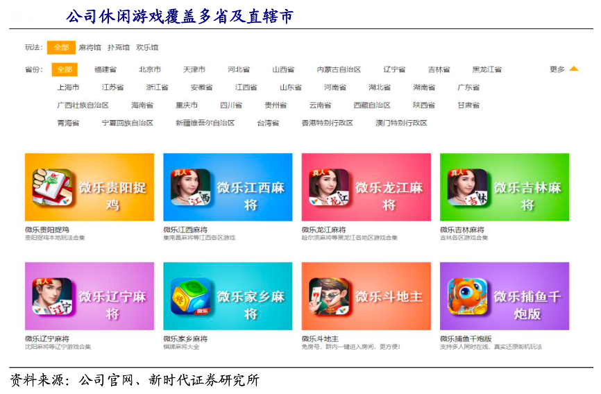 經典案例:根據公司官網、新時代證券研究所等綜合資訊表明,家鄉互動公司進軍整個休閑 游戲過程中塑造了微樂,科樂,吉祥三大游戲品牌,根據 2020 年財報顯示,其目前提供的本地化麻將玩法變種,至少覆蓋中國 28 個 省及直轄市的部分縣城。僅 2020 年內,其推出了 54 款新麻將玩法變種、18 款新撲克玩法變種 及 2 款休閑游戲,基本實現對主流棋牌游戲玩法的全覆蓋。