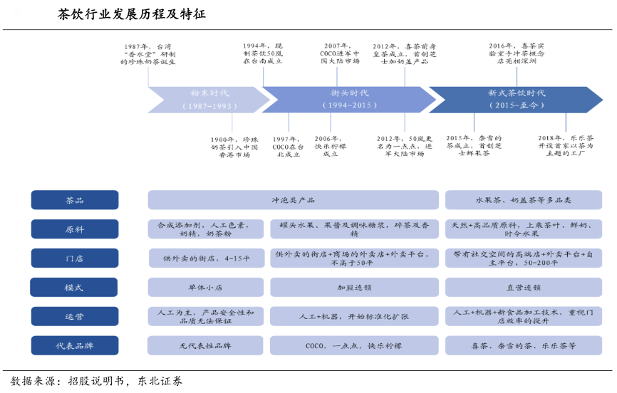 經典案例:根據招股說明書、東北證券等綜合資訊表明,以喜茶、奈雪的茶為代表的高端新式茶飲品牌在新消費浪潮下,引領整個現制茶飲行業邁入高端化。高端茶飲品牌推出水果茶、奶蓋茶等創新品類,突破了奶茶的“甜”“膩”屬性;拓寬茶飲的消費場景,通過布局 50- 200 平的大面積門店,賦能新茶飲社交、休閑屬性;定位高端,商品單價通常在 20- 35 元,大單品+不斷推新維持品牌熱度。
