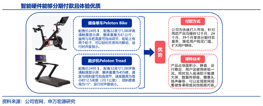 經典案例:從公司官網、申萬宏源研究等綜合資訊表明,Peloton公司的健身智能硬件產品只有健身單車和跑步機,且不斷升級更新,以保證給予用戶最佳體驗。如公司為提高智能電單車在使用時的沉浸式體驗,專門開發了精細化的動感音樂平臺,已經獲得了超過 100 萬歌曲的授權,是全球最大的健身音樂資源庫。同時,其還深入參與了健身音樂的創作,聯合藝術家共同創作課程,用戶可以根據自身偏好選擇不同主題的音樂列表,提高訓練體驗。