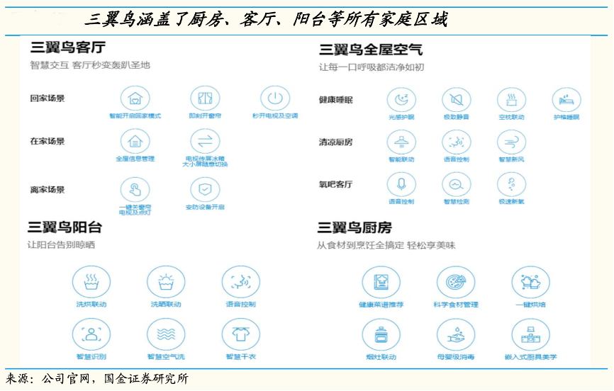 經典案例:根據公司官網、國金證券研究所等綜合資訊表明,行業普遍銷售模式以單品為主,卡薩帝推出了套系產品(指揮家、 帝博、銀河等),三翼鳥實現全空間全品類套系家電。
