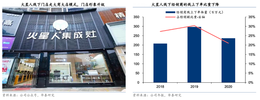 經典案例:根據公司公眾號、公司年報、華泰證券研究所等綜合資訊表明,集成灶作為耐用品,線下產品體驗和售后安裝服務對消費者的購買決策起到重要影響,火星人積極投入人力、物力引導線下經銷商共同參與到線上營銷造勢活動中來。其針對線上線下同款促銷機型推出力度較大的銷量專項返利,引導經銷商在電商平臺下單,提高線上銷售排名,吸引更多潛在經銷商加盟。