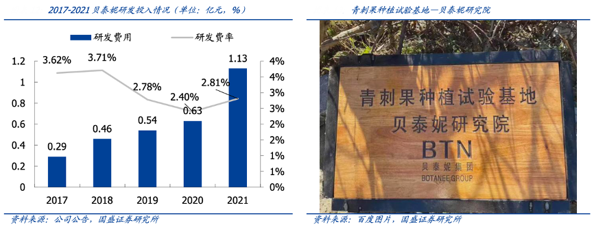 經典案例:根據公司公告、百度圖片、國盛證券研究所等綜合資訊表明,薇諾娜公司持續加碼研發投入,2021年研發費用達 1.13 億元(yoy+78.5%),研發人員數量從 104 人增至 236 人,占比總人數從 5.46%增至 9.92%。2019年其被云南省批準為省級博士后科研工作站,2020年將研發中心升級為貝泰妮研究院,成立特色植物研發中心、功效性護膚品研發中心及醫療器械研發中心。 2021年其累計完成 63 家醫院皮膚學科臨床研究和效果觀察,發表154 篇學術論文被 SCI 等核心期刊收錄,累計申報獲得授權發明專利 22 項,實用新型專利 31 項。