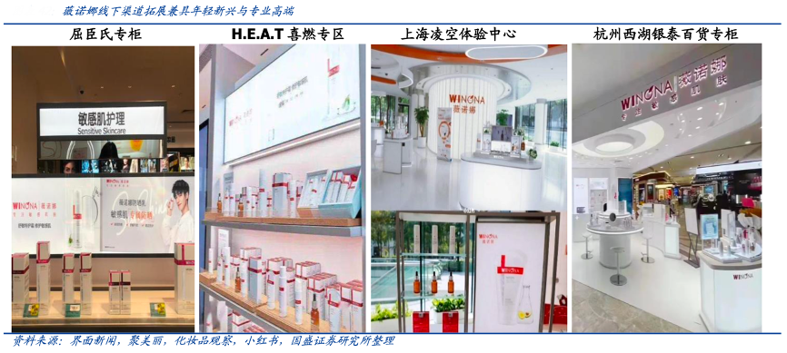 經(jīng)典案例:根據(jù)界面新聞、聚美麗、化妝品觀察、小紅書、國盛證券研究所等綜合資訊表明,2020 年 6 月,薇諾娜打破原有傳統(tǒng)渠道,逐步開通屈臣氏、H.E.A.T 等新零售渠道,截止 2021 年底已累計(jì)入駐 4000 余家屈臣氏店鋪并收效良好,單店產(chǎn)出逐步提升,2021年 9 月其于上海開設(shè)全國首家線下體驗(yàn)中心,提供產(chǎn)品展示、肌膚檢測等專業(yè)化的肌膚綜合服務(wù)方案。