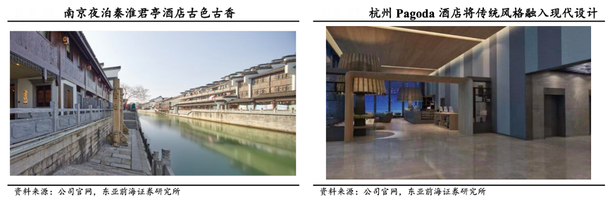 經典案例:根據公司官網、東亞前海證券研究所等綜合資訊表明,君亭酒店每一家店不僅共同營造東方文化整體氛圍,而且分別突出了地方文化特色,給人耳目一新的感覺。例如南京夜泊秦淮君亭酒店以東晉書法家王獻之與愛妾桃葉的浪漫愛情故事為背景,隔岸就是金陵四十八景之一的“古桃葉渡”,從踏入酒店撲面而來就是滿滿的浪漫色彩。而“Pagoda 君亭”品牌則注重 “東西方美學的融合”,靈動的功能空間、年輕的色彩美學,體現了其設計上的國際品質基因與中國城市文化結合的特點。