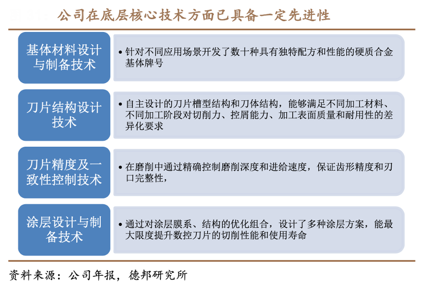 經(jīng)典案例:根據(jù)公司年報、德邦研究所等綜合資訊表明,歐科億公司自主研發(fā)的用于金屬加工的鋸齒刀片在產(chǎn)品尺寸精度、被加工材料、工況等方面與數(shù)控刀片具有很多的相似性,部分材料牌號、生產(chǎn)工藝可直接沿用到數(shù)控刀片。此外,其公司在多年硬質(zhì)合金制品的生產(chǎn)過程中掌握了一套預(yù)防產(chǎn)品變形的專有技術(shù),在此基礎(chǔ)上公司為數(shù)控刀片的生產(chǎn)建立了一套完整的壓制參數(shù)數(shù)據(jù)庫,可以精確控制產(chǎn)品的精度一致性。
